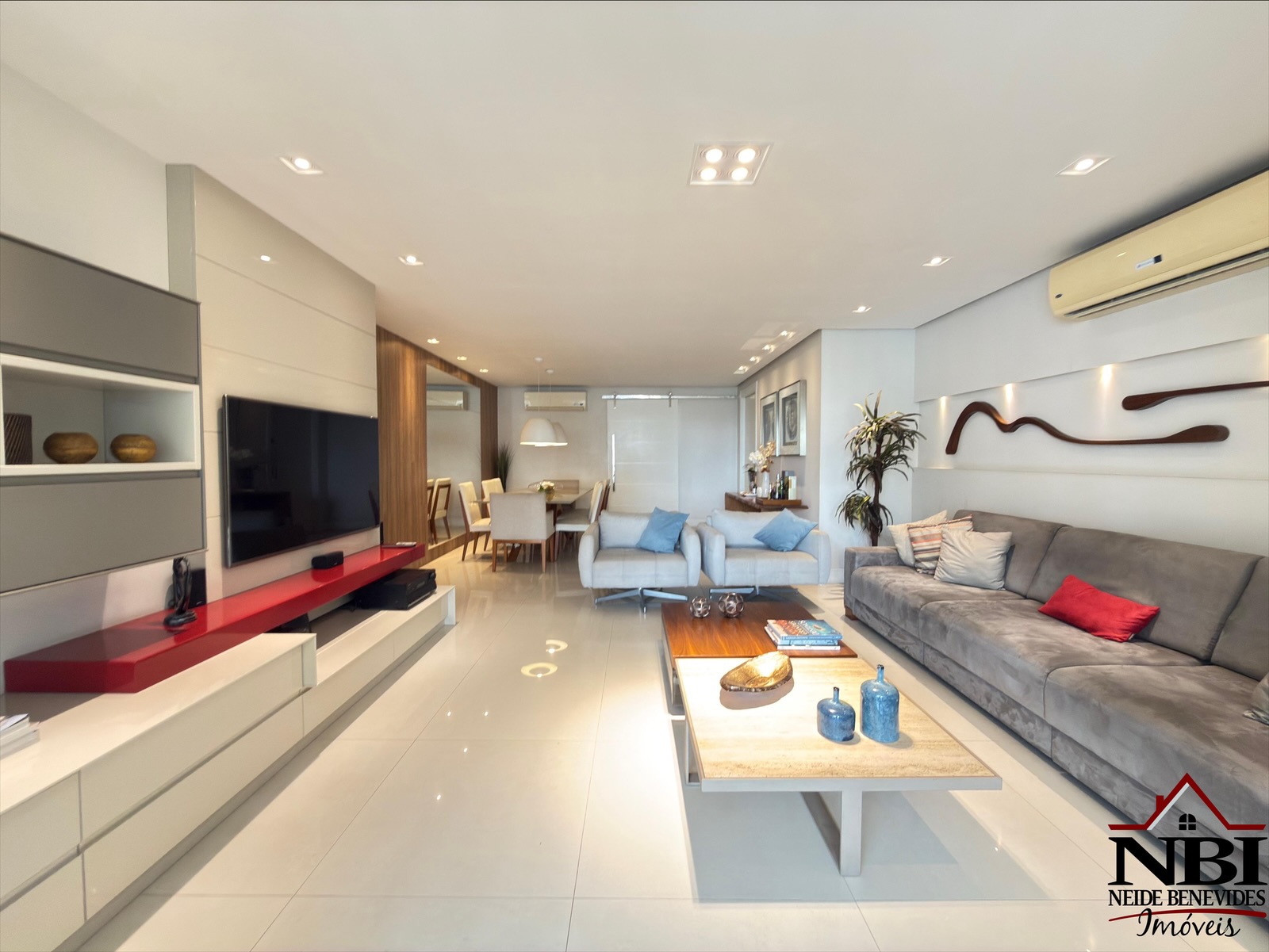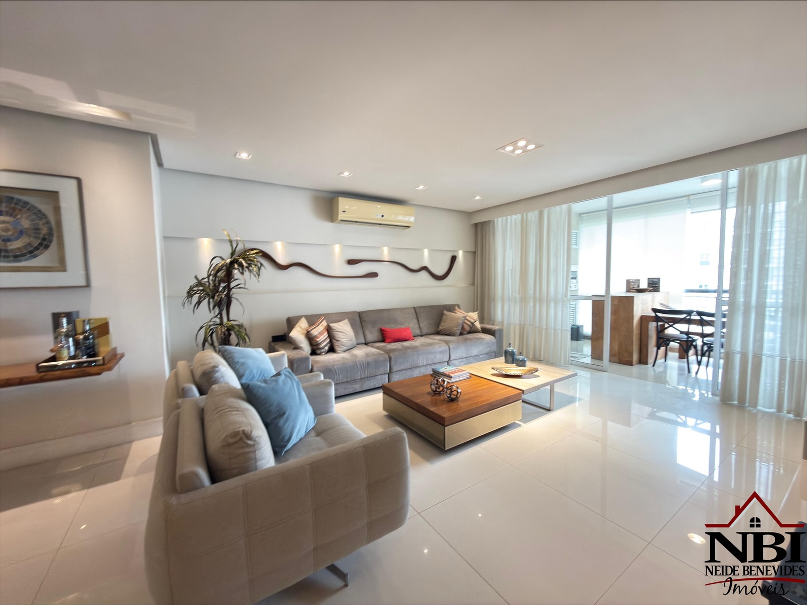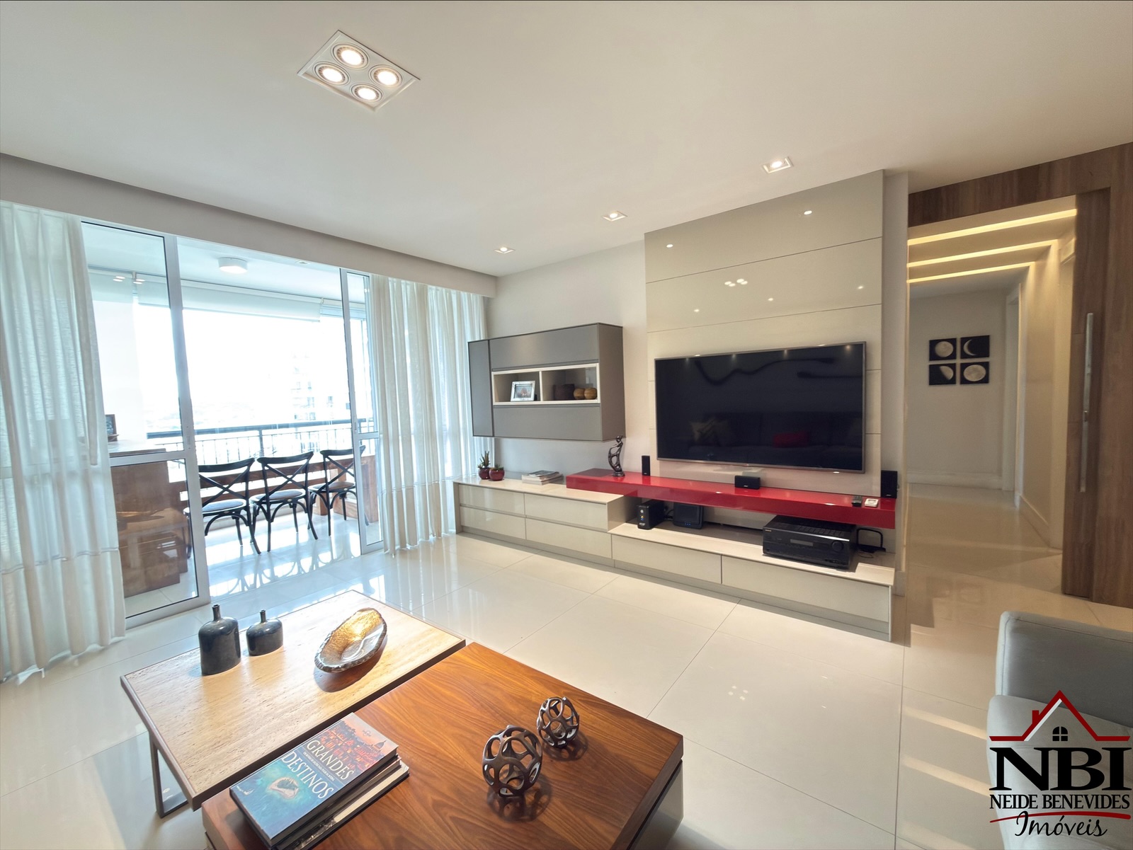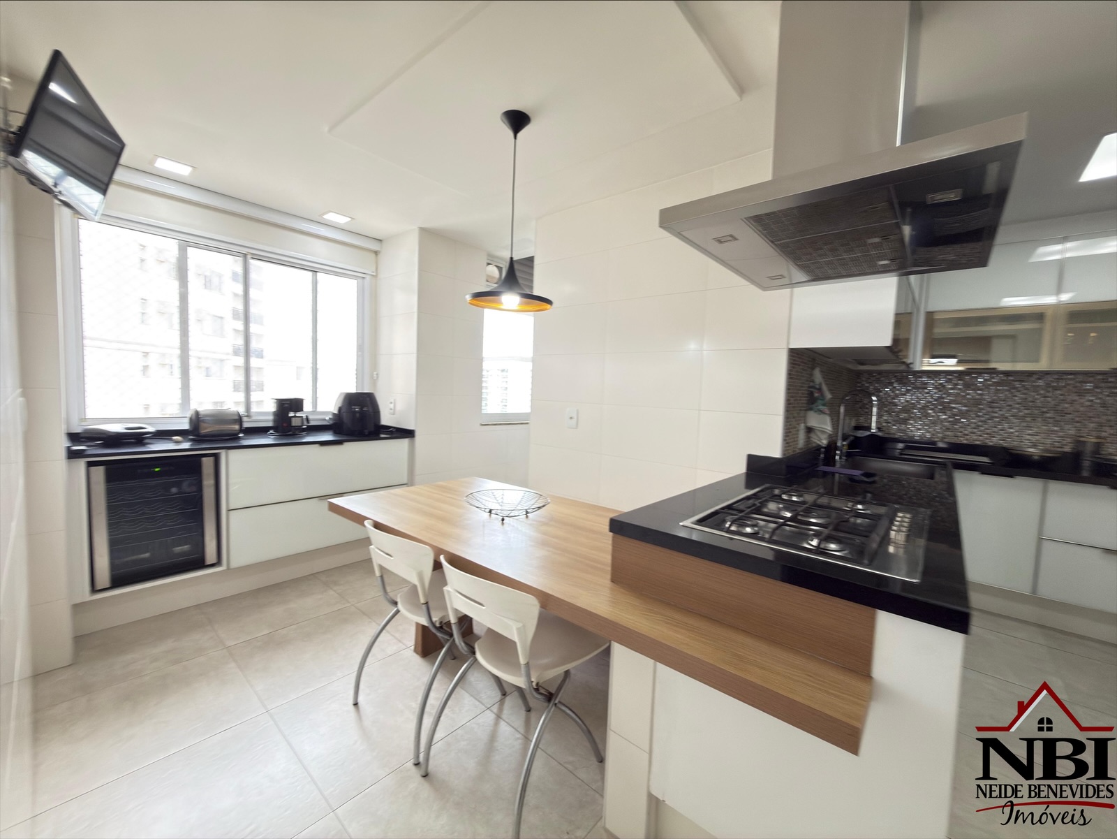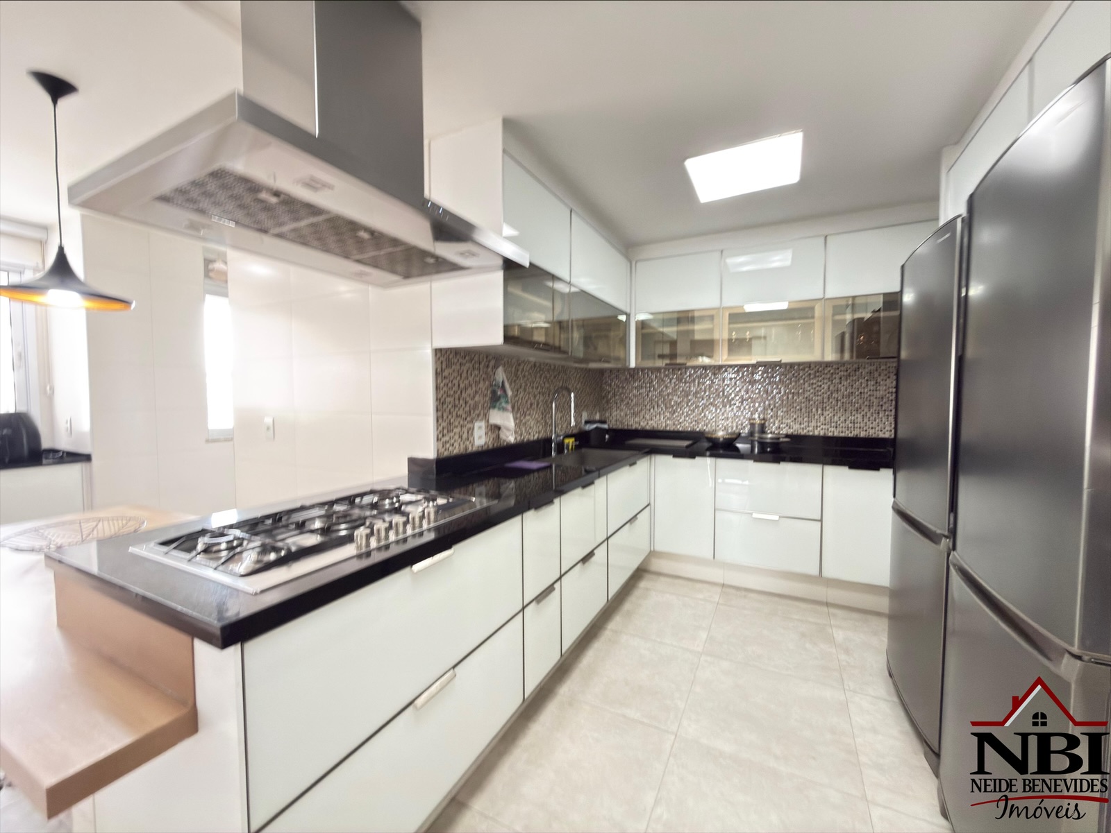 Todo equipado com armários da melhor qualidade, tem piso em porcelanato, tetos com trabalho em gesso, iluminação projetada e ainda dispõe de uma bela varanda gourmet com churrasqueira e cortina de vidro.